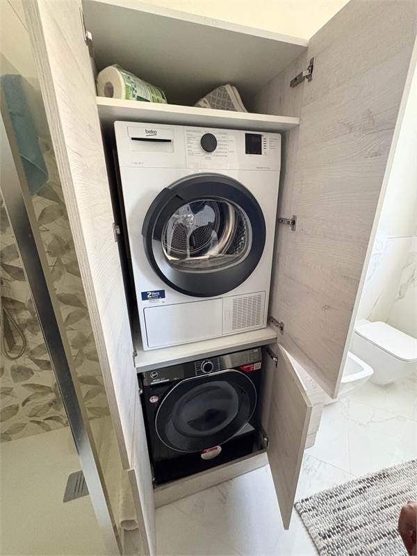 La soluzione è già completamente arredata e immediatamente abitabile, arricchita dalla presenza di lavatrice, asciugatrice e una cucina completamente attrezzata.
