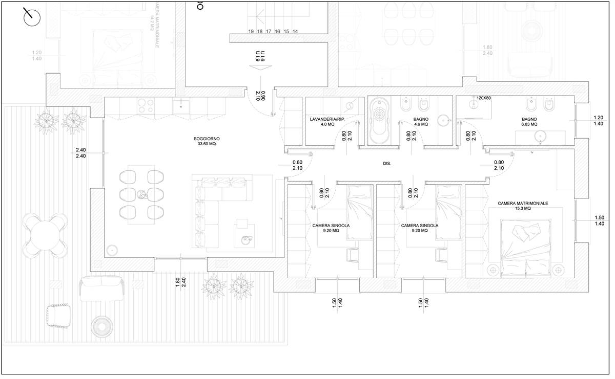 La soluzione in oggetto è un appartamento quadrilocale di 112 mq con terrazzo, posizionato al 1° piano.