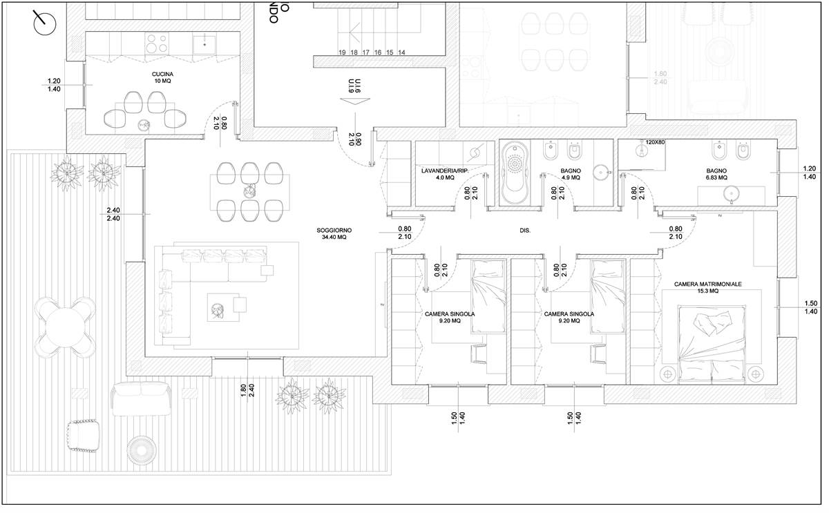 La soluzione in oggetto è un appartamento quadrilocale di 126 mq con terrazzo, posizionato al 2° piano.