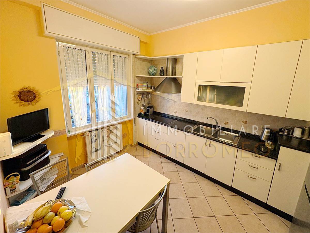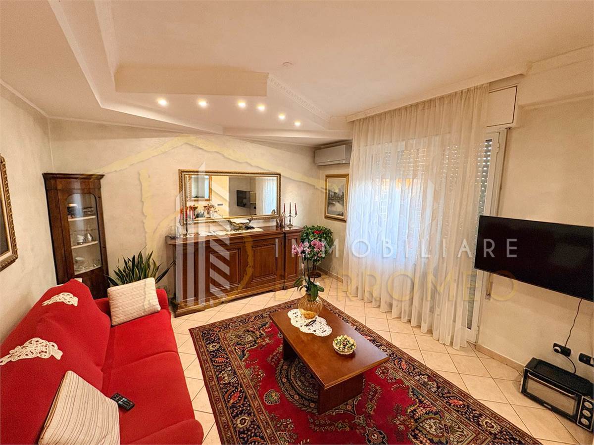 L’appartamento si sviluppa su un unico livello di 110 mq e comprende: ingresso con balcone, soggiorno, cucina abitabile, disimpegno, due camere da letto matrimoniali e bagno.