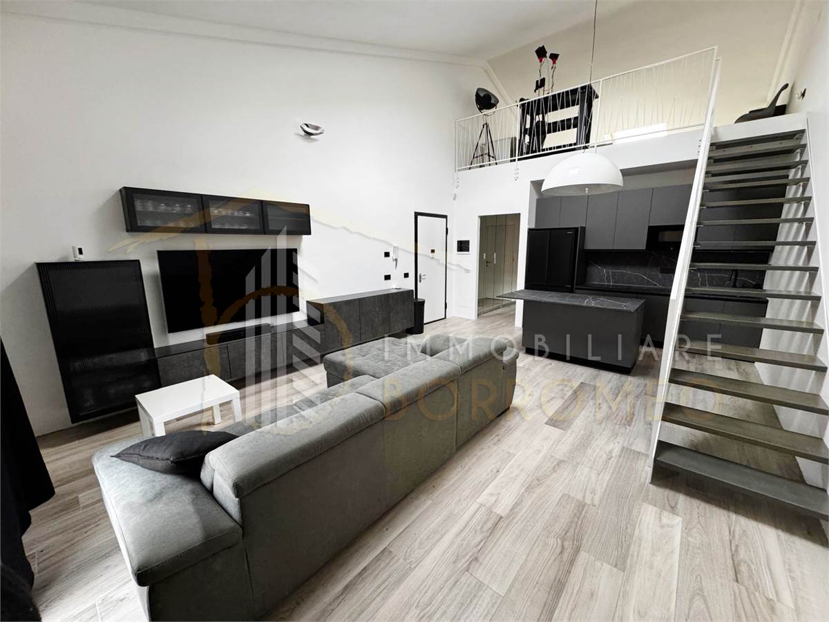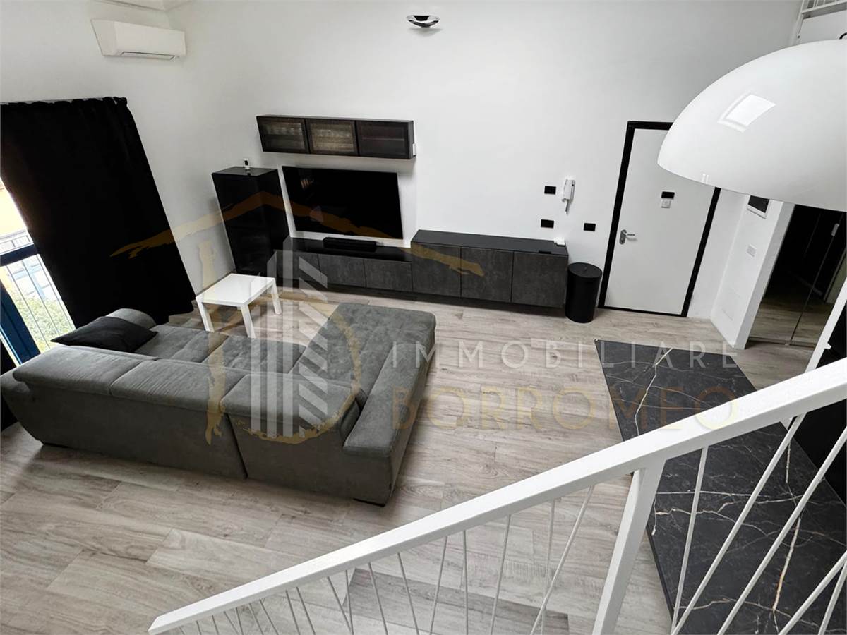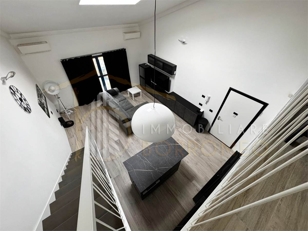 L’appartamento, di circa 90 mq, si distingue per gli spazi ampi e ben distribuiti. L’ingresso si apre sulla moderna zona giorno con angolo cottura, caratterizzata da un’elegante scala che conduce al soppalco. Il disimpegno accompagna alla camera matrimoniale e al bagno.