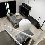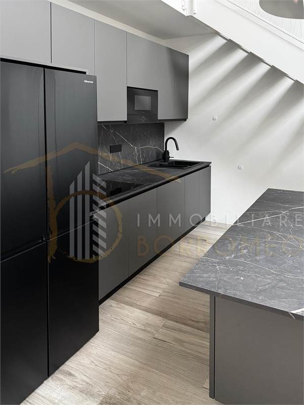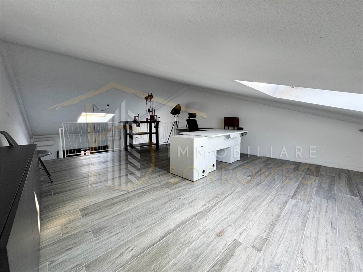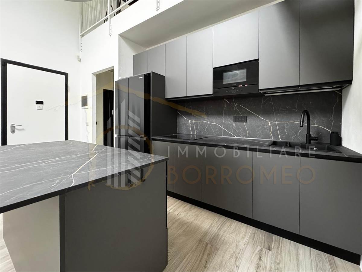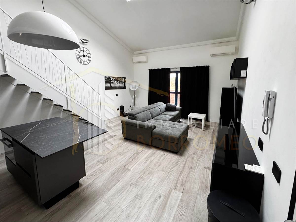 L’appartamento, di circa 90 mq, si distingue per gli spazi ampi e ben distribuiti. L’ingresso si apre sulla moderna zona giorno con angolo cottura, caratterizzata da un’elegante scala che conduce al soppalco. Il disimpegno accompagna alla camera matrimoniale e al bagno.